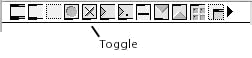 オブジェクト・パレットの中の 'X' が中にあるボックスが toggle です。これは0 および 非0 の2つの状態を表わすインジケーター、またはその切り替えのためのスイッチとして動作します。
